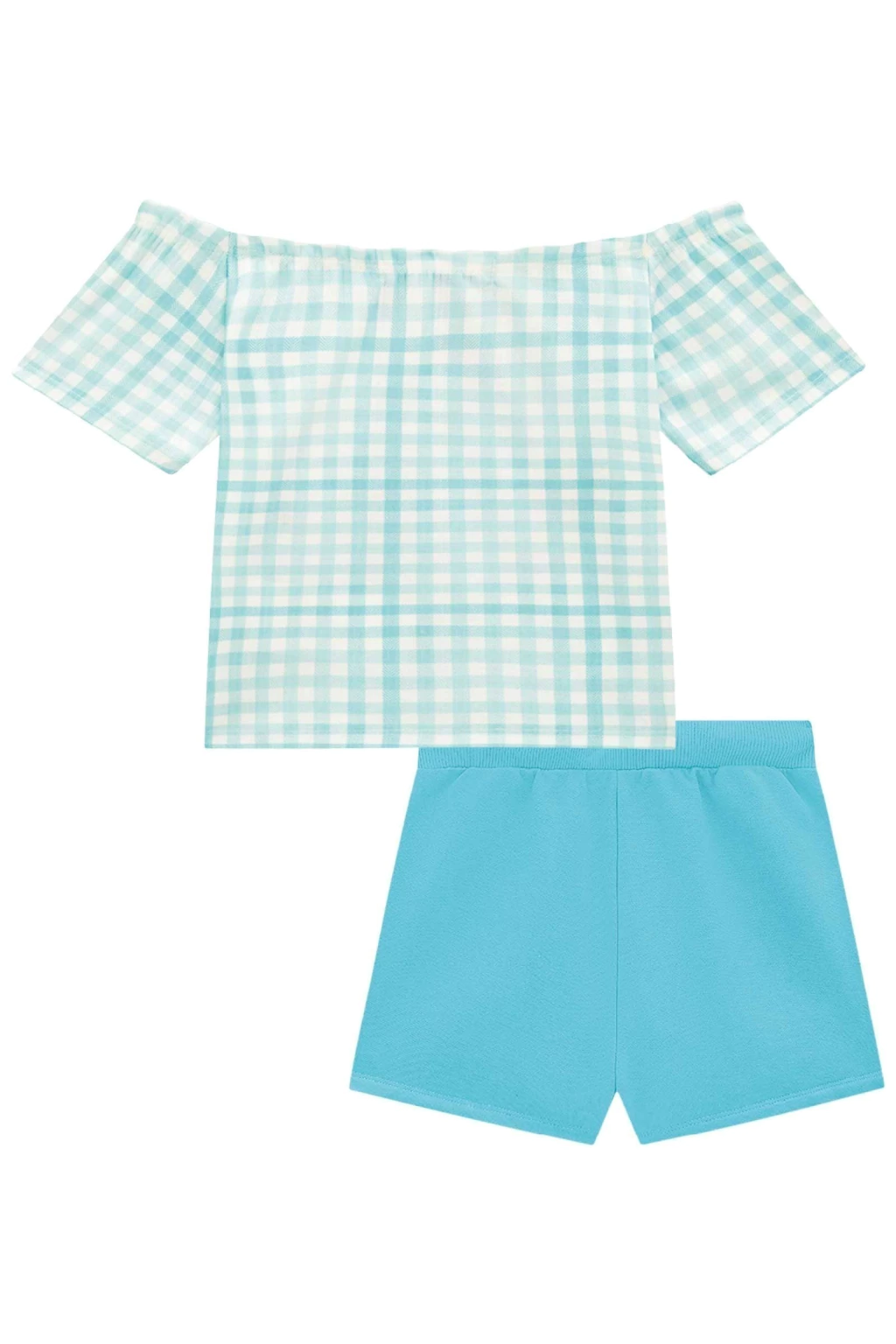 O conjunto infantil da Kukiê, com blusa e shorts estampados com os Ursinhos Carinhosos, é uma escolha encantadora para as meninas. A blusa é feita de 96% de poliéster e 4% de elastano, proporcionando conforto e elasticidade. O shorts é confeccionado com 100% de algodão, garantindo maciez e permitindo liberdade de movimento. Este conjunto é perfeito para deixar as pequenas confortáveis e estilosas durante o dia.