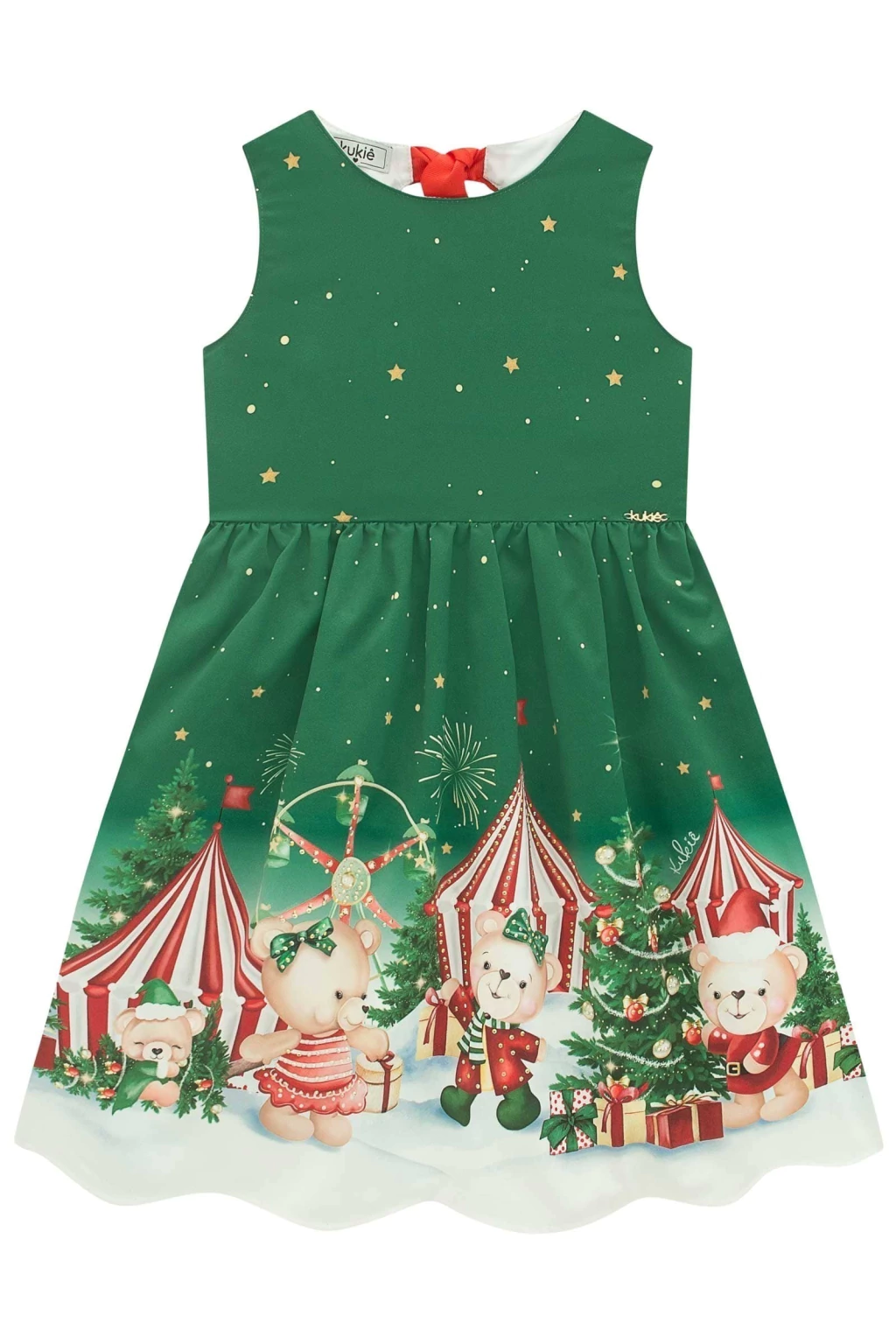 O Vestido Infantil Kukiê Natalino em Super Cetim apresenta um design encantador, com detalhes cuidadosamente elaborados que capturam o espírito natalino.